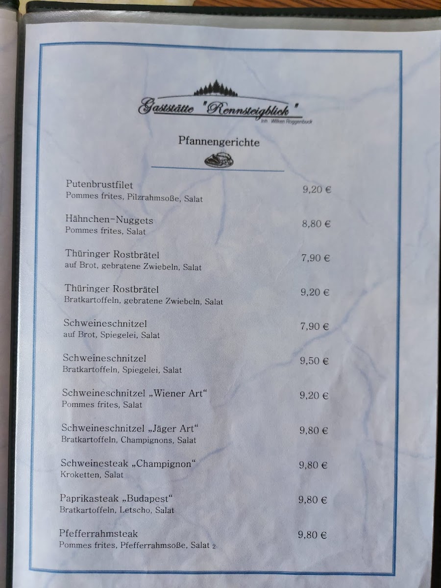 Gaststatte Rennsteigblick - Wilken Roggenbuck is a charming eatery located in Bad Salzungen, Germany. Known for its cozy atmosphere and authentic German cuisine, this family-run establishment prides itself on freshly prepared dishes crafted by the chef himself. Diners rave about the homemade salads and generous portions, perfect for those with a hearty appetite. Many visitors appreciate the warm hospitality and personal touch from the owner, making each meal feel special. Signature offerings, such as Thüringer Rostbrätel and hand-breaded schnitzels, have garnered rave reviews, inviting guests to return time and again for comforting and satisfying meals.